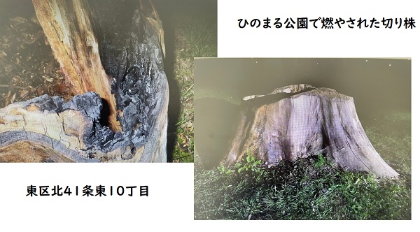 3日夜、札幌市東区の公園で切り株から火がでました。同日午後10時45分ごろ、札幌市東区北41条東10丁目の「ひのまる公園」の敷地内で、近くをランニングしていた男性から「切り株が燃えている」と警察に通報がありました。