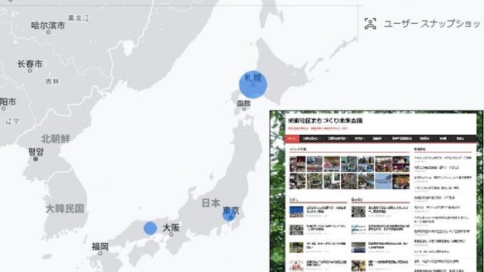アクセスしている市町村では、札幌市が64.9%とで、不明が19.6%、千代田区が3.7%、名古屋が1.3%となっています。札幌市からのアクセスが多く、地区ごとのアクセス数は分析できませんが、ホームページの定着がうかがえます(1か月に何回アクセスしても原則ユーザは1とカウント)。