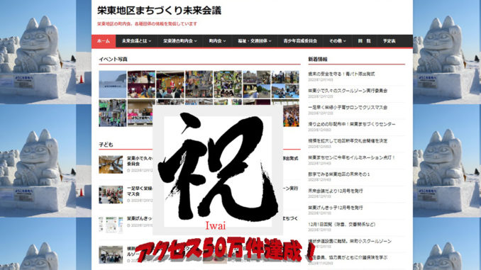 このほど、アクセス数50万件を達成しました。このサイトは、地域活動にかかる情報が子育て世代など若い層に届いていないことを解消し、地域活動の活性化を図ること、また、大規模災害時に栄東地区のことは、このページを見れば情報が得られるということを地域に浸透させることをねらいとしています。最近は、月間、2万件にアクセスがあり、地域に受け入れられている証左を言えましょう。