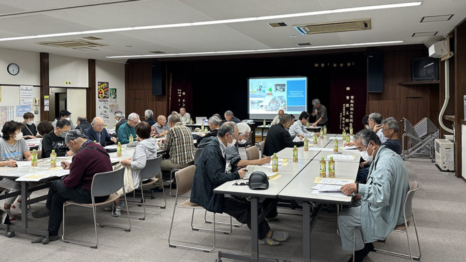 9月26日は、運営の中心となる2分区の町内会役員など38人が集まって、日の丸会館で事前学習会を開催しました。備蓄庫一つとっても学校ごとに異なり、避難者の受け入れの動線をどうするのか、避難スペースはどう割り振るのかを考え、当日、円滑な運営を目指して実施したものです。