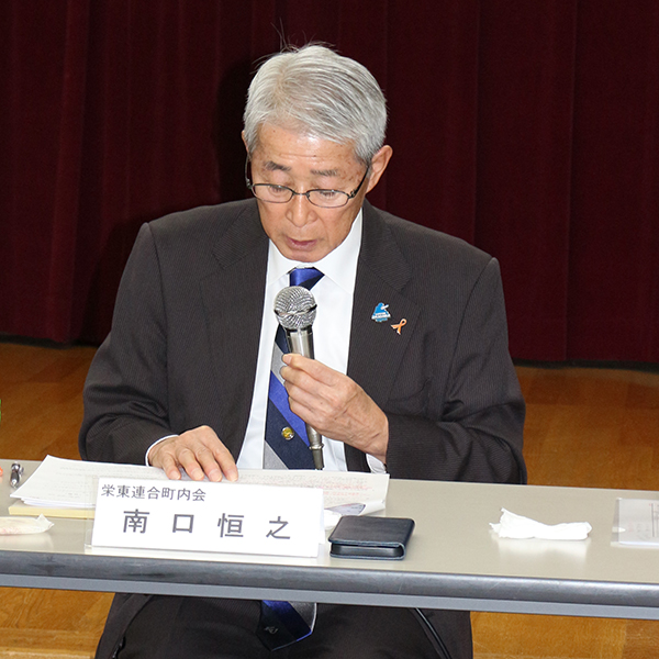 連絡事項などを説明する南口・副会長