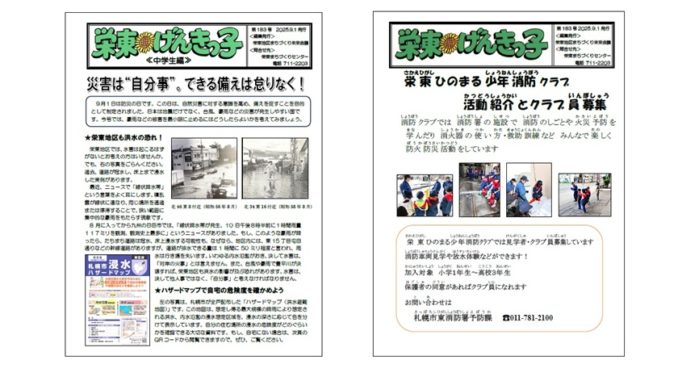 小学校版は栄東ひのまる少年消防クラブについて、中学校版は9月1日の防災の日にちなみ中学生でもできる防災対策を取り上げました。