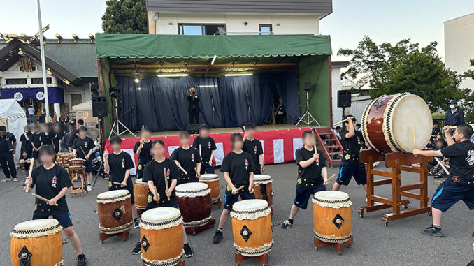 9月14日、明治22年に建立された歴史ある烈々布神社(東区北42条東10丁目)で、宵宮祭が開かれました。前日の天気予報では降雨が予想されていましたが、幸い雨は降らず、夕方から毎年恒例の「栄中学校太鼓部」による和太鼓が演奏されました。