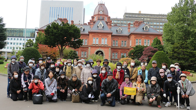 毎月、訪問先を変えて実施している栄東連合町内会女性部主催の健康ウォーク歩こう運動ですが、10月23日は、旧道庁の赤レンガ庁舎を訪ねました。