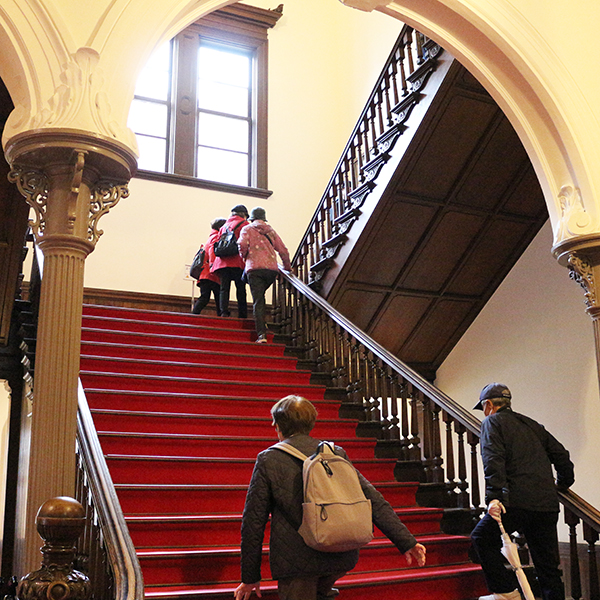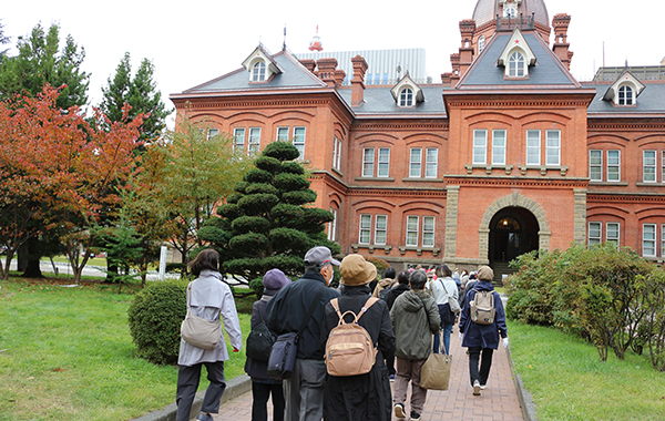 庁舎内には、赤レンガ庁舎の歴史やアイヌ文化・歴史、そして北海道遺産・文化などの展示があり、参加された44名の方々は、思い思いに庁舎を歩きながら、その歴史を振り返っていました。
