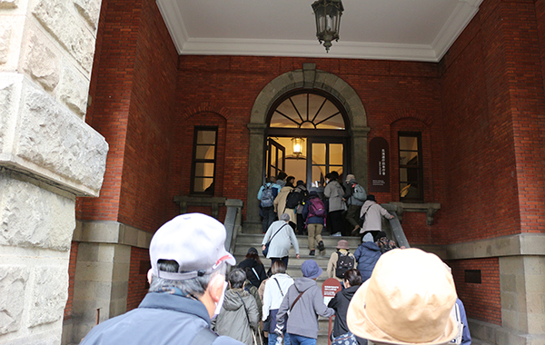 午前9時に日の丸会館を出発し、地下鉄で札幌駅まで行き、そこから徒歩で道庁へ向かいました。北海道道庁旧本庁舎の赤レンガ庁舎は、国指定重要文化財で、令和元(2019)年から、休工期間を挟みながら、5年余りに及ぶ大規模改修を行い、本年7月25日にオープンしました。