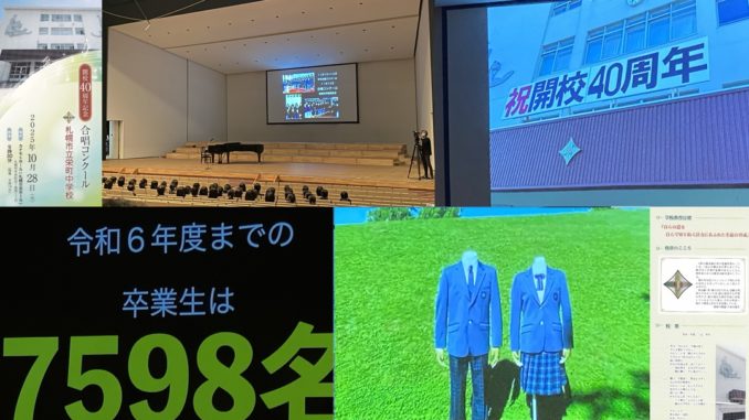 このほど、栄町中学校が開校40周年を迎えています。10月28日には、これを記念して、カナモトホール(札幌市民ホール)で、全校生徒が参加する合唱コンクールが開催されました。