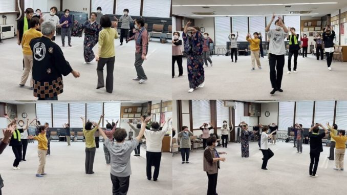 休憩をはさんで、ポップな「恋するフォーチュンクッキー」「波乗りジョニー」に、なんとハードロックの「ボン・ジョヴィ」と続きます。なんでもありの盆踊り教室ですが、参加された22名のみなさんにとって、輪になって心も弾む!踊り初めでした。