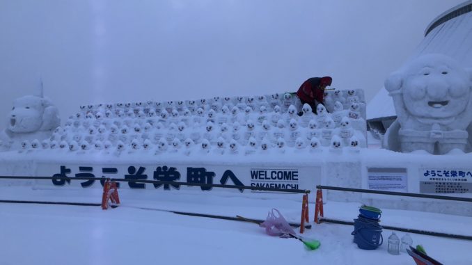 大雪でも雪像のクオリティを保つ早朝メンテ 2026年2月9日 hasebe 栄東地区まちづくり未来会議 0 8日からの20cmを超える大雪でつどーむ会場のウエルカム雪像もすっぽり雪に包まれてしまいました。9日午前7時すぎに実行委員や町内会役員が集合し、雪像を覆った雪を払います。1時間余りの作業で雪だるまも姿を現しました。こうした見えない作業が雪像のクオリティを保っています。 (写真上:雪をかぶった雪像。写真下:メンテナンス後の雪像) 今日も来場客を迎えるウエルカム雪像 生き返った栄東小の雪だるまたち Views: 10 子ども文化ほか