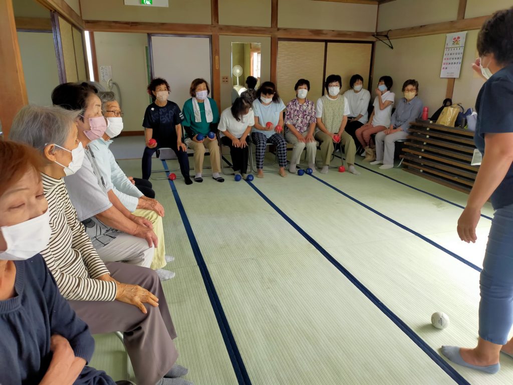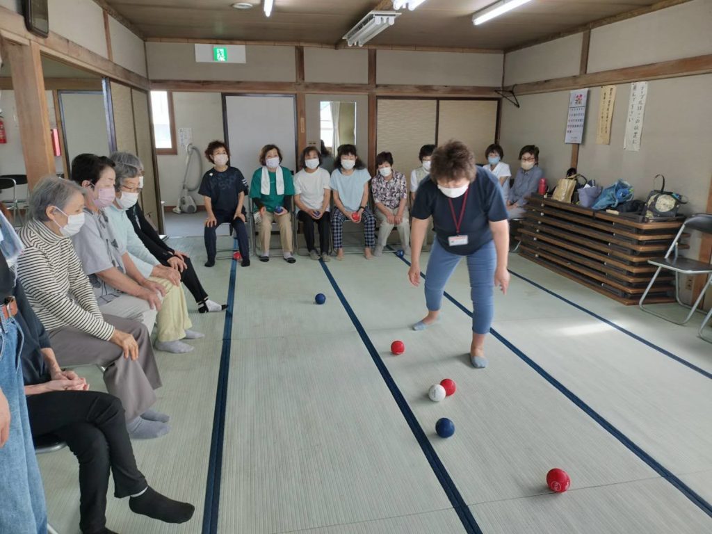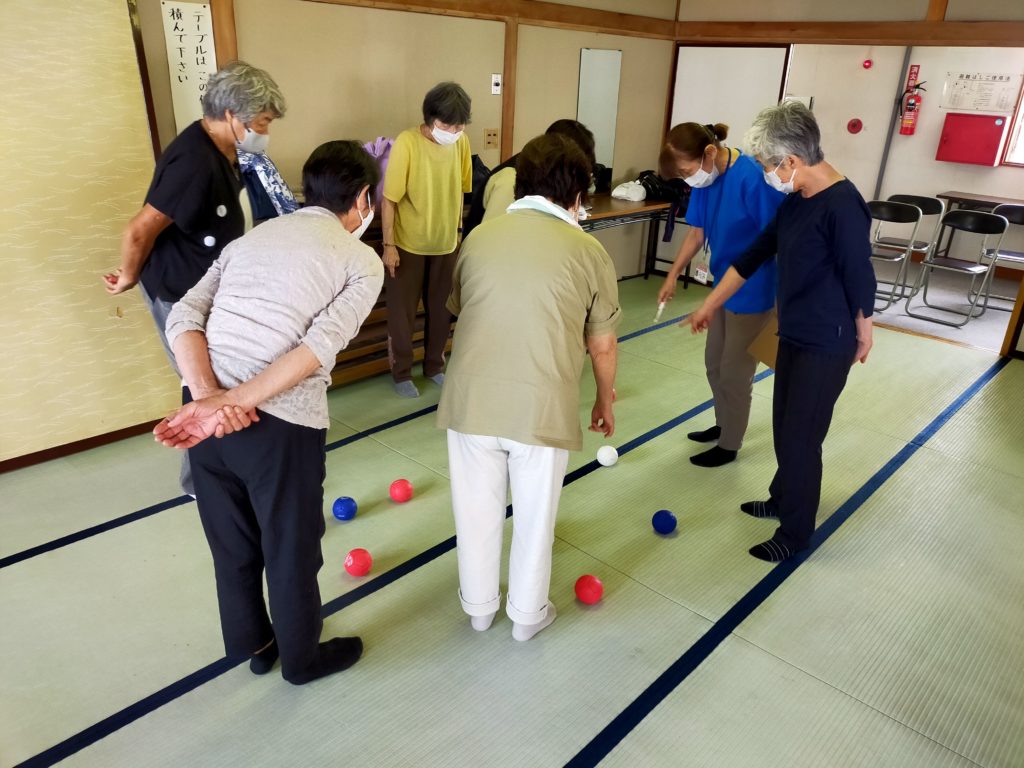9月12日、参加者は21名でした。初めにタッピー体操上級編を行いました。次にサロンでは初めての「ボッチャ」に挑戦しました。7チームに別れ2チームで競いました。パラリンピックの正式な競技という事で知っている方も多いかと思います。軽いスポーツ感覚で実際に行うことができます。ジャツクボール(目標ボール)と呼ばれる白いボールに赤・青の6球ずつのボールを弾いだりして、自分の優位に立てる位置取りをしていきますが、敵も弾いて移動させることができるため、カーリングとは、一味違う戦略・魅力がある競技です。次回の対戦が楽しみです。