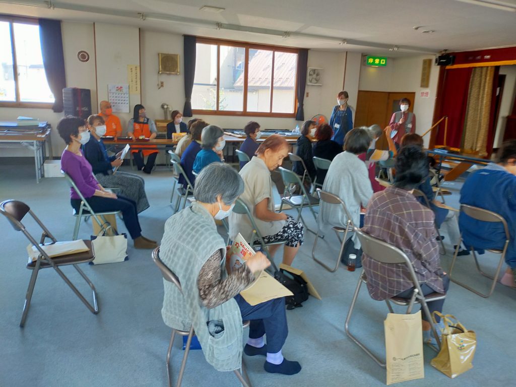 9月26日、参加者19名でした。この日は介護についての学びの日です。第3包括センターからは「介護保険の基礎内容」と「介護保険サービス」を利用するための流れを学びました。続いてこの地域で上げられる問題の1つ「買い物難民」。買い物の不便さの解決する鍵として「コープさっぽろ夕食宅配サービス」「トドック」のお弁当の注文の仕方から便利な使い方など説明を受けました。