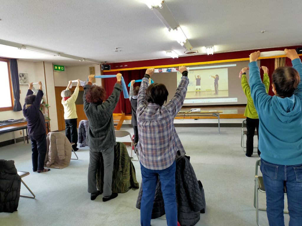 1月23日も、17名の皆様にご参加いただきました。タッピー体操で体をほぐし、軽めのエアロビックで心拍数を上げていきます。昭和歌謡から最新の流行曲まで、幅広いジャンルの音楽に合わせて、手足を大きく動かして全身運動!途中には、脳トレにもなる間違い探しで、頭もリフレッシュ。体も心もスッキリした時間を過ごされました。