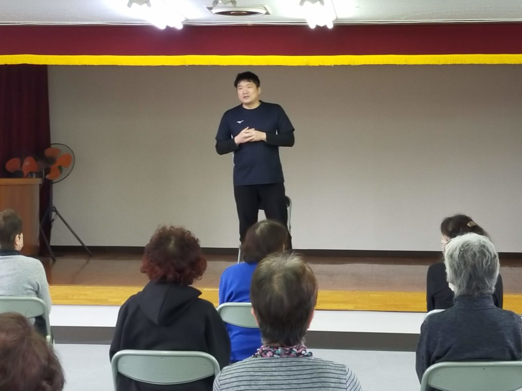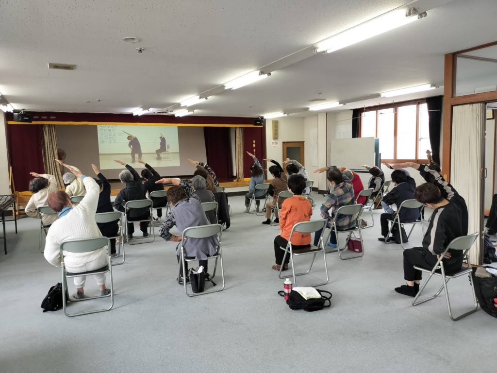 「4月24日(木)」 24名と多くの方が参加してくださいました。今日は、講師である阿部慎平先生から「からだコンディショニング」の指導を受けました。初めての講座に、参加者の皆さんはワクワクドキドキしている様子でした。軽いストレッチから始まり、徐々に負荷のかかるストレッチへと進みました。肩こりや腰痛など、普段気になる部分をスムーズに動かせるようになるストレッチ体操で、心も体も軽くなりました。締めのお茶の時間には、いつも以上に話が弾み、笑顔があふれていたように感じます。今日行ったコンディショニング体操を、一つでもご自宅で習慣にできると良いですね。