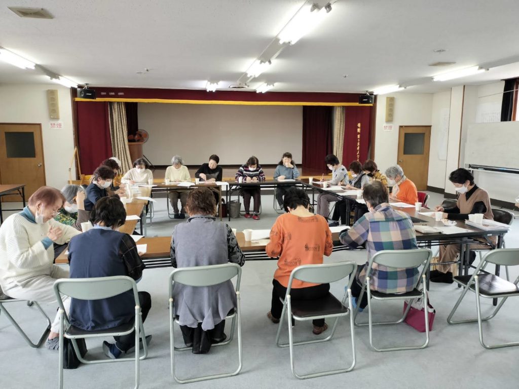 「4月10日(木)」 今年度最初の教室には21名の方が参加されました。まず、タッピー体操の解説から始まり、続いて札幌スマイル体操の解説を聞きながら丁寧に行いました。その後、脳トレを行いました。配られたプリントには、しりとりやナンプレなど初級から中級の問題があり、できなかった部分は次回の宿題となりました。