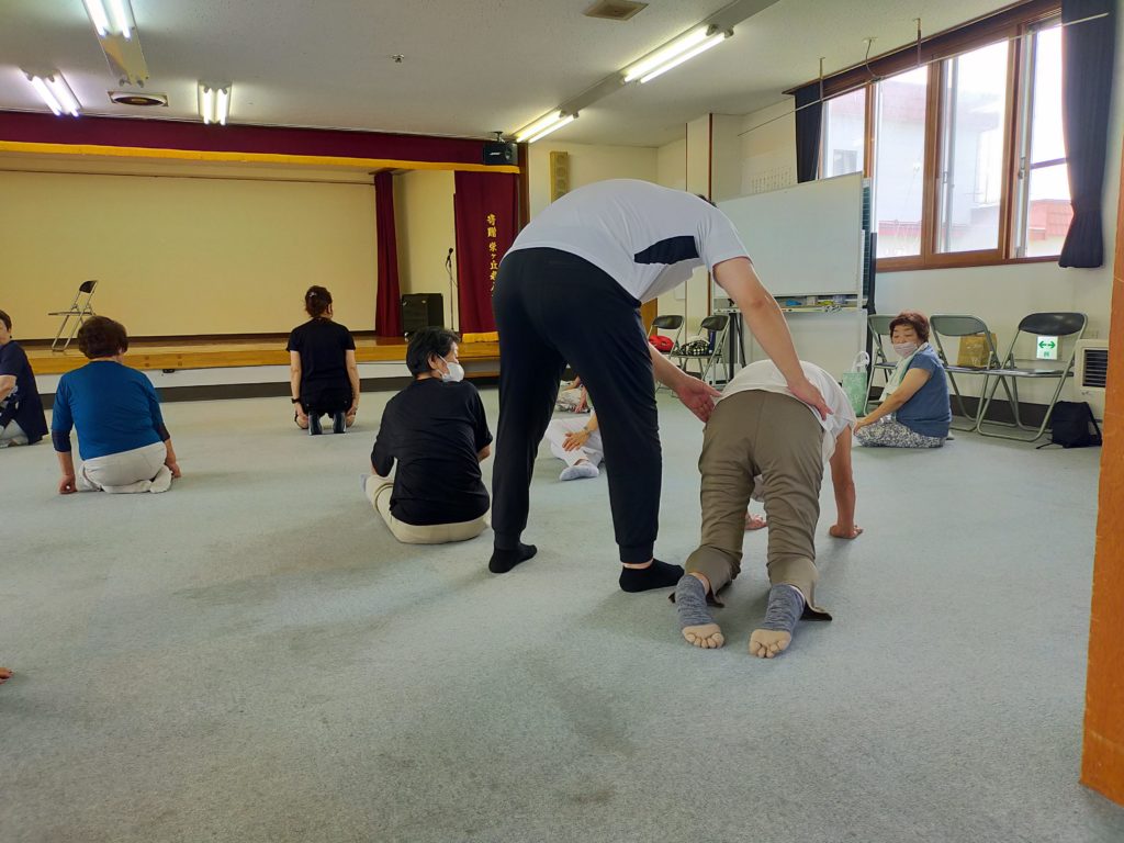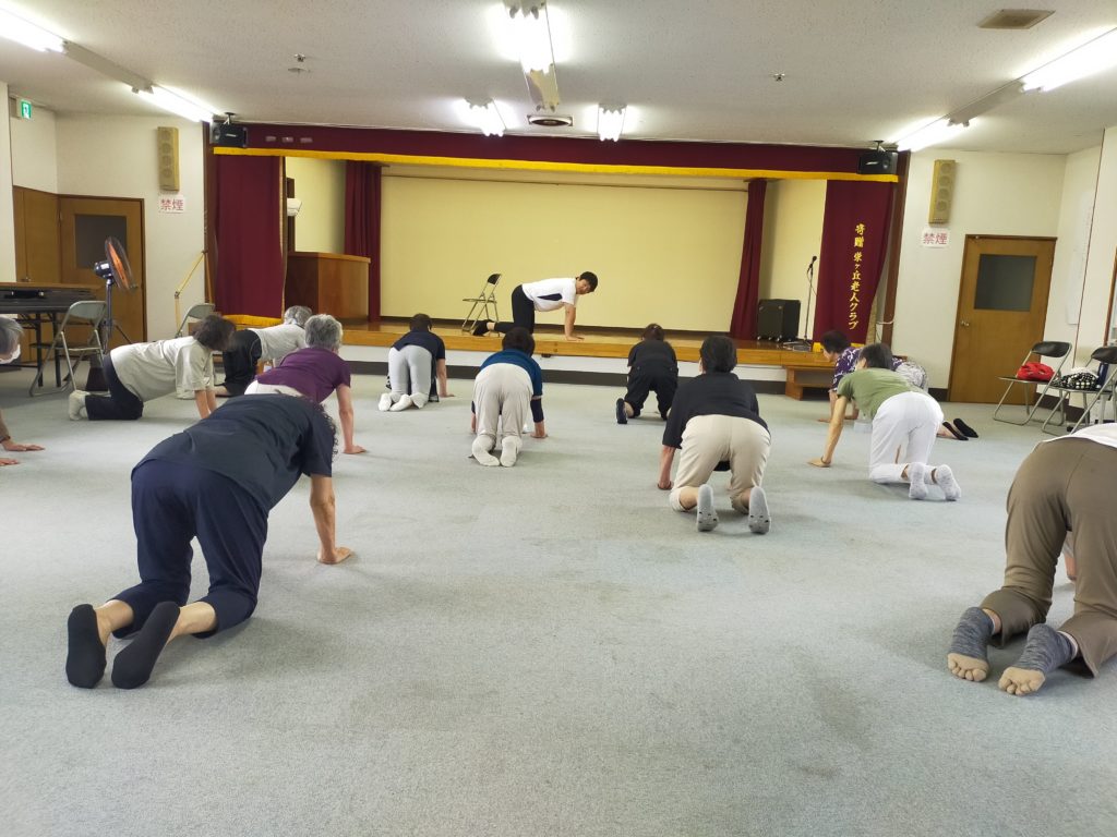 阿部先生の指導のもと、首から腕、肩、腰、足先へと全身を順にほぐしていく体操は、まさに体がリラックスしていくのを実感できるものでした。最後はゆっくりとしたストレッチでクールダウン。参加者からは「次回の開催はいつですか?」という声が上がるほど、阿部先生のコンディショニングは大変好評です。