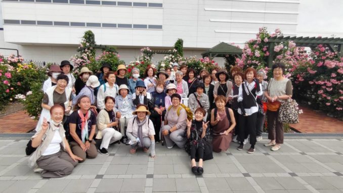 程なく最初の目的地ロイズタウン工場店に到着。バスを降りた途端バラの香りがただよい、まるで参加者たちを歓迎するかのようでした。ちょうど見ごろのバラ庭園をバックに集合写真を撮ったあとは自由行動。庭園の散策や売店でのお買い物、アイス片手に一休みと思い思いの時間を過ごしました。