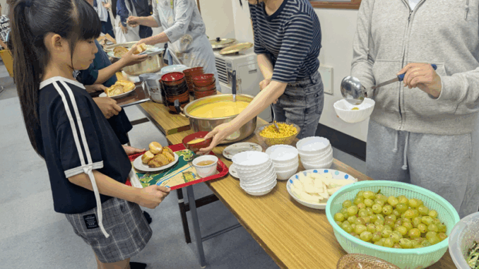 そして、そのアサリを調理してくれる食育部の皆さんは、気温が暑くなってきたせいで台所の中は蒸し風呂状態ですが、子どもたちのために調理してくれました。本当にいつもありがとうございます。