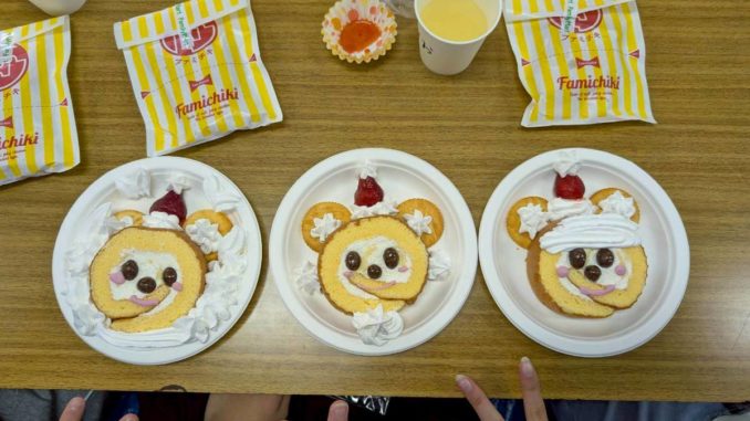 思い思いにクリームやトッピングをのせ、個性あふれるケーキが並びました。