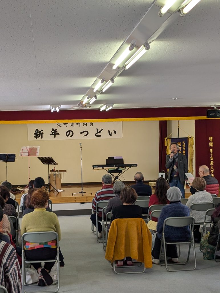 令和8年1月18日(日)栄ケ丘会館にて「新年のつどい」が開催されました。当日は大人49名、こども10名の計59名が参加。会場のあちこちで「お久しぶりです!」と笑顔の挨拶が飛び交い、温かな雰囲気の中で会がスタートしました。