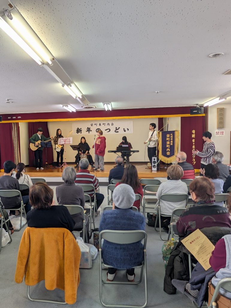 社会貢献活動を積極的に行っている社会人音楽サークル**「Sapporo Session Studio(札幌セッションスタジオ)」**から6名の皆様にお越しいただきました。大人から子どもまで楽しめる名曲の数々に、会場は大盛り上がり!エビカニクス(みんなで楽しく踊りました!)夢をかなえてドラえもんパプリカ上を向いて歩こう 音色で繋ぐ温かな時間でした♪